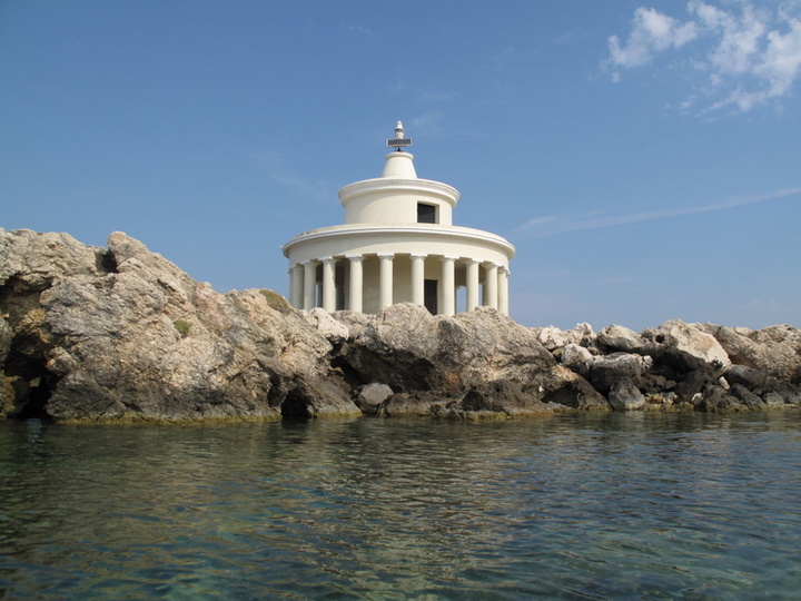 Built by British in 1828 on a man-made peninsula. It was destroyed on the earthquake of 1953 and rebuilt exactly as it was before